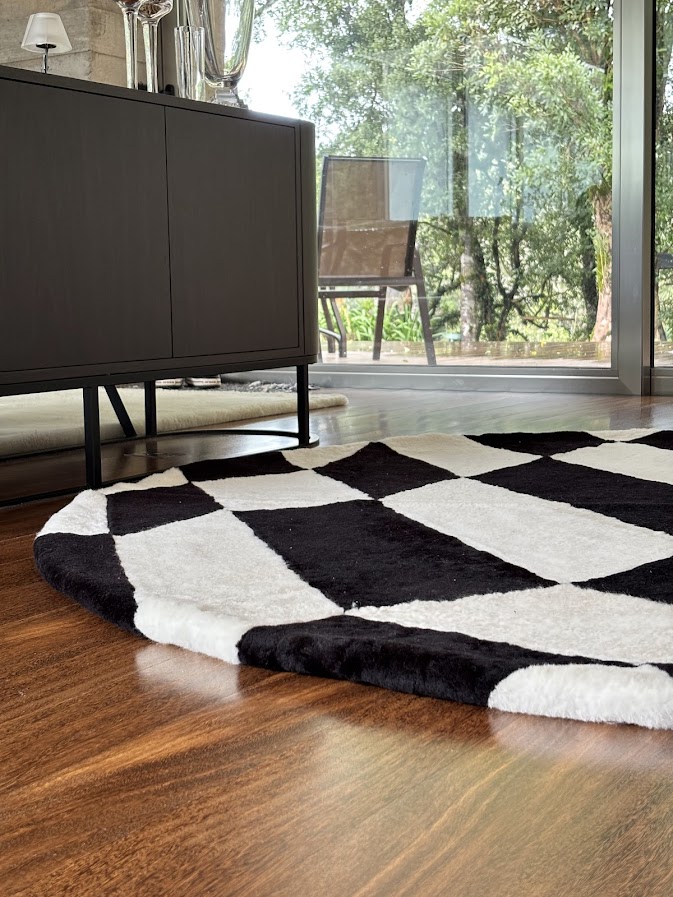 Peles de carneiro, cuidadosamente cortadas, que combinadas em cores e costuras de forma precisa e delicada, formam tapetes onde a arte, a maciez, o conforto, o luxo e o requinte estão presentes.